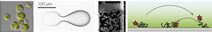Our strategy relies on (i) the development of new dedicated experimental instruments specially designed to probe the interactions at the molecular scale in relation to the macroscopic behavior, (ii) the development of well controlled synthetic colloids and hydrogels for which we can control surface interactions and reactivity, and (iii) the extension of our approach to biosourced and living colloids which external surface includes biopolymers whose interactions control the suspensions dynamics and stability.